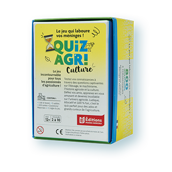 Les Éditions France Agricole viennent de lancer un nouveau jeu de société 100% dédié à l’univers agricole, Quiz Agri Culture, qui va justement mettre vos connaissances et vos neurones à rude épreuve. Ce nouveau venu est la promesse de parties de jeu animées avec vos ados ou entre amis, au cours desquelles vous prendrez plaisir à défier vos adversaires.