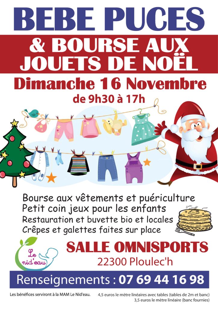 Plus de place dans vos placards? dans le garage ? Venez vendre les jouets, les vêtements des enfants, etc… pour faire de la place chez vous avant Noël ! Venez passer une bonne journée en notre compagnie et repartez avec un peu d’argent et moins de choses chez vous. Venez Chiner des trésors à mettre au pied du sapin, ou tout simplement venez chiner ce dont vous avez besoin pour vos enfants.